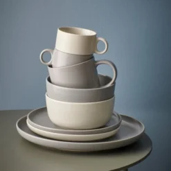 OGO Living Vaisselle De Noël Lot De 6 Assiettes Desserts En Grès Gris 20,5cm