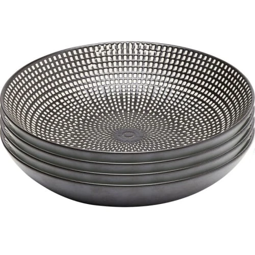 Maisons Du Monde Assiettes Plates Assiette Plate En Grès écru à Motifs Gris Anthracites – Lot De 6