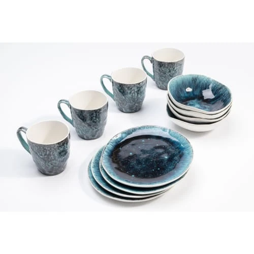 Maisons Du Monde Assiettes Plates Assiette Plate En Grès écru à Motifs Gris Anthracites – Lot De 6