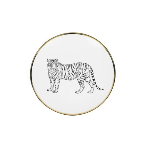 Assiette à dessert en porcelaine de Limoges avec un motif Tigre.