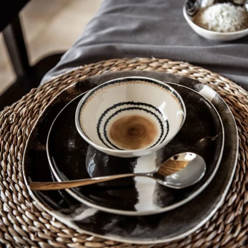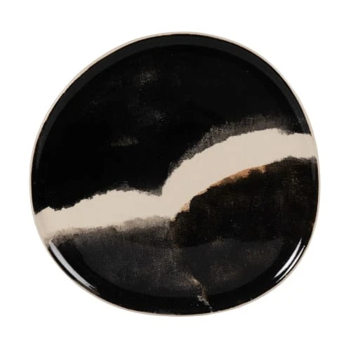Maisons Du Monde Assiettes Plates Assiette Plate En Grès écru à Motifs Gris Anthracites – Lot De 6