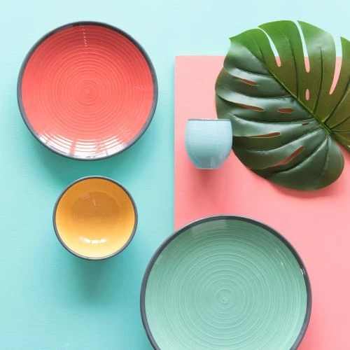 Maisons Du Monde Assiettes Creuses Assiette Creuse En Grès Multicolore Motif Végétal – Lot De 6