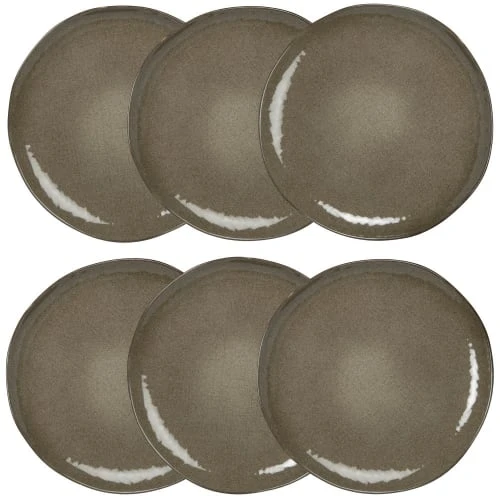 Maisons Du Monde Assiettes Plates Assiette Plate En Grès écru à Motifs Gris Anthracites – Lot De 6