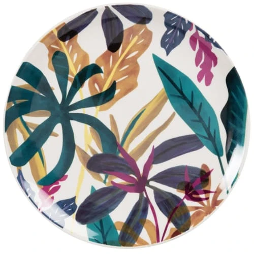 Maisons Du Monde Assiettes Plates Assiette Plate En Porcelaine Blanche Motif Végétal Multicolore – Lot De 6