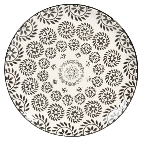 Des invités arrivent pour le déjeuner ? Pour dresser une table moderne et exotique, optez pour l’assiette plate en grès noir et blanc imprimé CHIANG MAI. Elle captera les regards sur elle et insufflera une note chic et fantaisiste tout au long du repas. Amusez-vous à la mixer à une nappe colorée ou à un set de table tressé, à une assiette à dessert unie noire ou jaune moutarde. Le petit plus de cette assiette plate ? Elle rejoindra le lave-vaisselle et le micro-ondes.