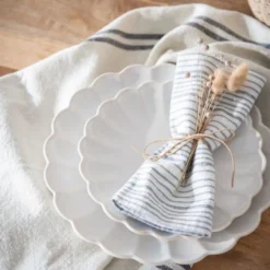 Maisons Du Monde Assiettes à Dessert Assiette à Dessert En Grès Blanc Motifs à Rayures – Lot De 6