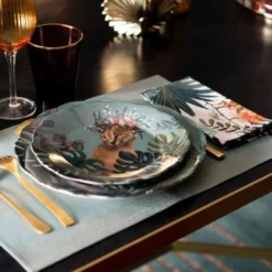 Maisons Du Monde Assiettes Plates Assiette Plate En Grès Beige Motifs Palmiers Noirs – Lot De 6
