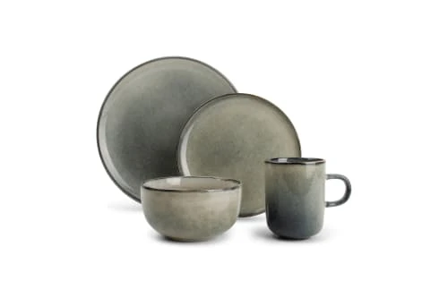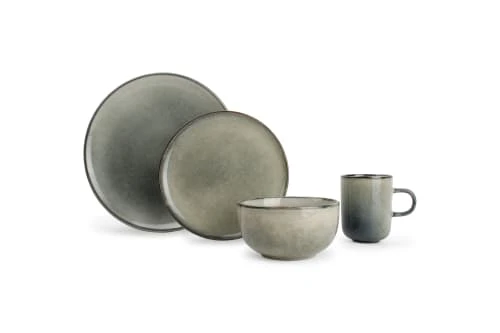 Maisons Du Monde Assiettes Plates Assiette Plate En Grès écru à Motifs Gris Anthracites – Lot De 6