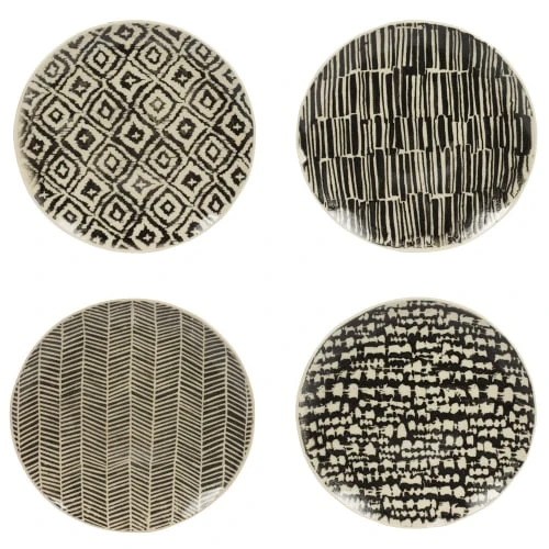 Maisons Du Monde Assiettes Plates Assiette Plate En Grès écru à Motifs Gris Anthracites – Lot De 6